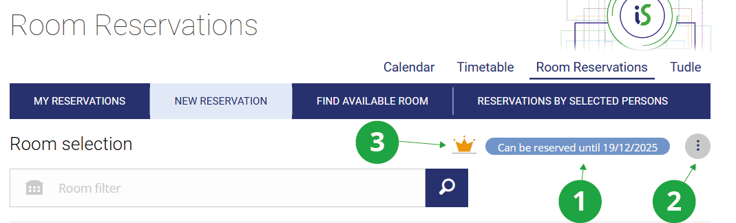 The date until which rooms can be reserved is displayed in the top right corner of the Room Reservations application: